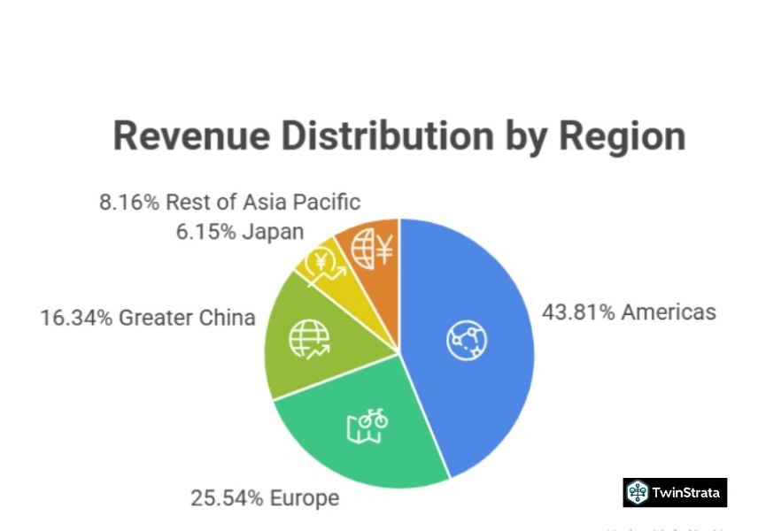 Apple’s 2025 revenue sees Americas at 43% share with strong US sales, while China rebounds 3% via local iPhone production; users in Europe benefit from 25% growth in services, enabling affordable bundles for streaming and storage.