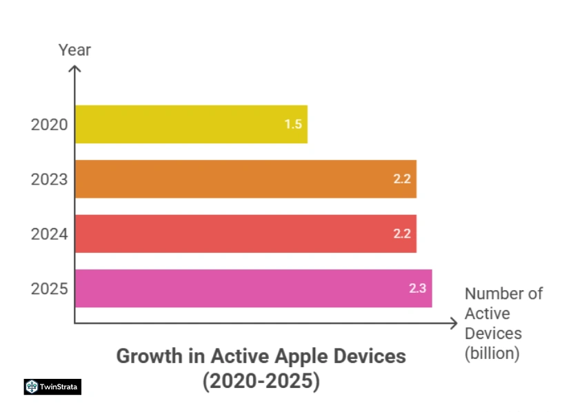 Apple’s active devices reach 2.3 billion in 2025, a 4.5% increase from 2024, driven by longer user retention and services like iCloud, allowing seamless data access across iPhone, iPad, and Mac for better personal organization.