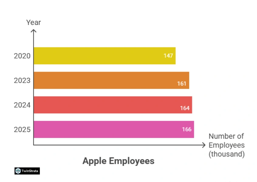 166,000 employees in 2025. You network via LinkedIn for Cupertino jobs. H-1B median salary: $165,000.