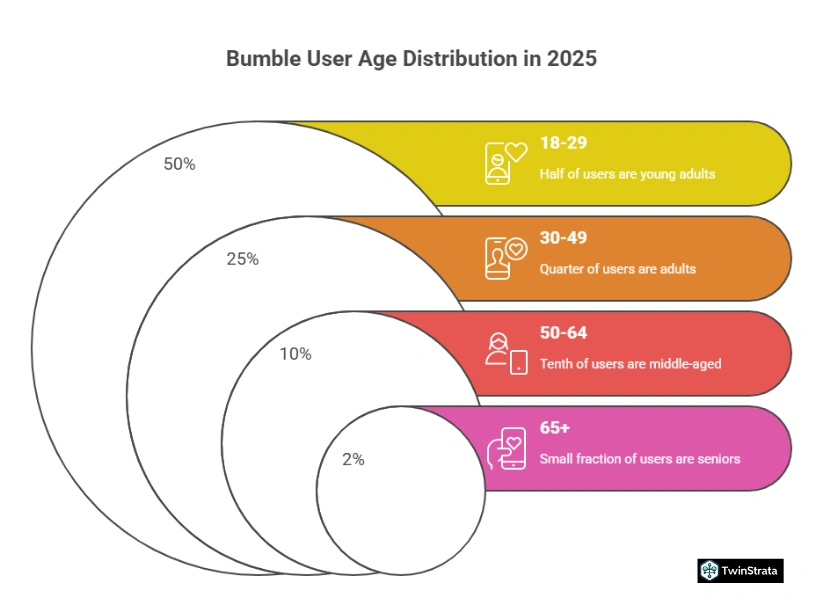 This makes it a prime platform for individuals in their late teens and twenties seeking relationships. While a majority of users fall under 35, the app still attracts a meaningful segment of older users, showing its broad appeal.