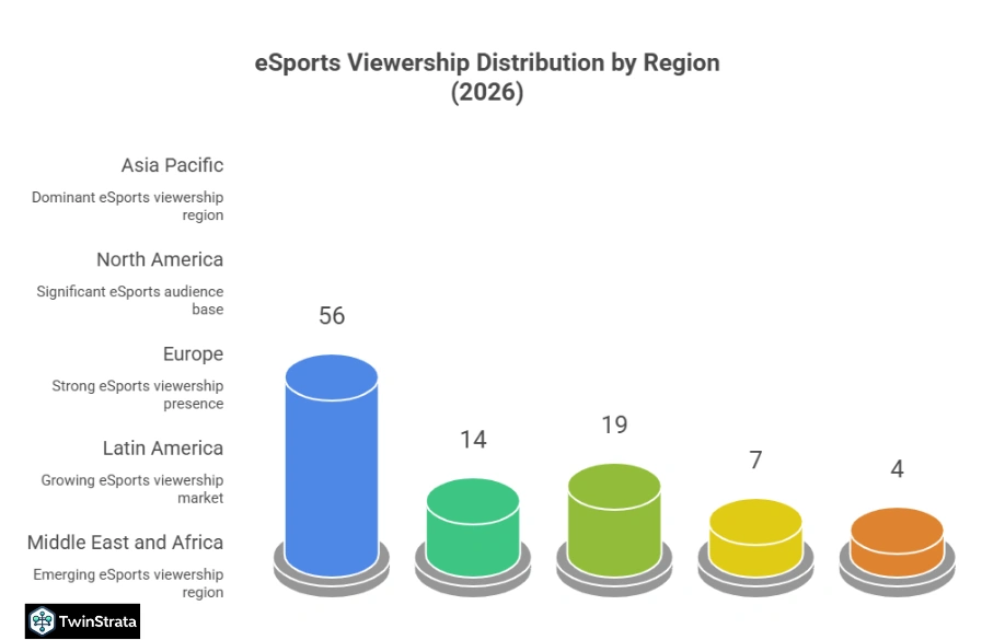 Asia Pacific leads with more than half of global viewers. Countries like China, South Korea, the Philippines, and Indonesia play a major role in this dominance.