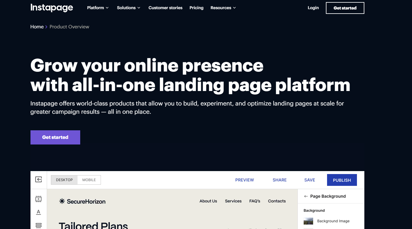 Instapage is a landing page builder designed to help businesses and marketers create, optimize, and analyze landing pages for lead generation, sales, and marketing campaigns.