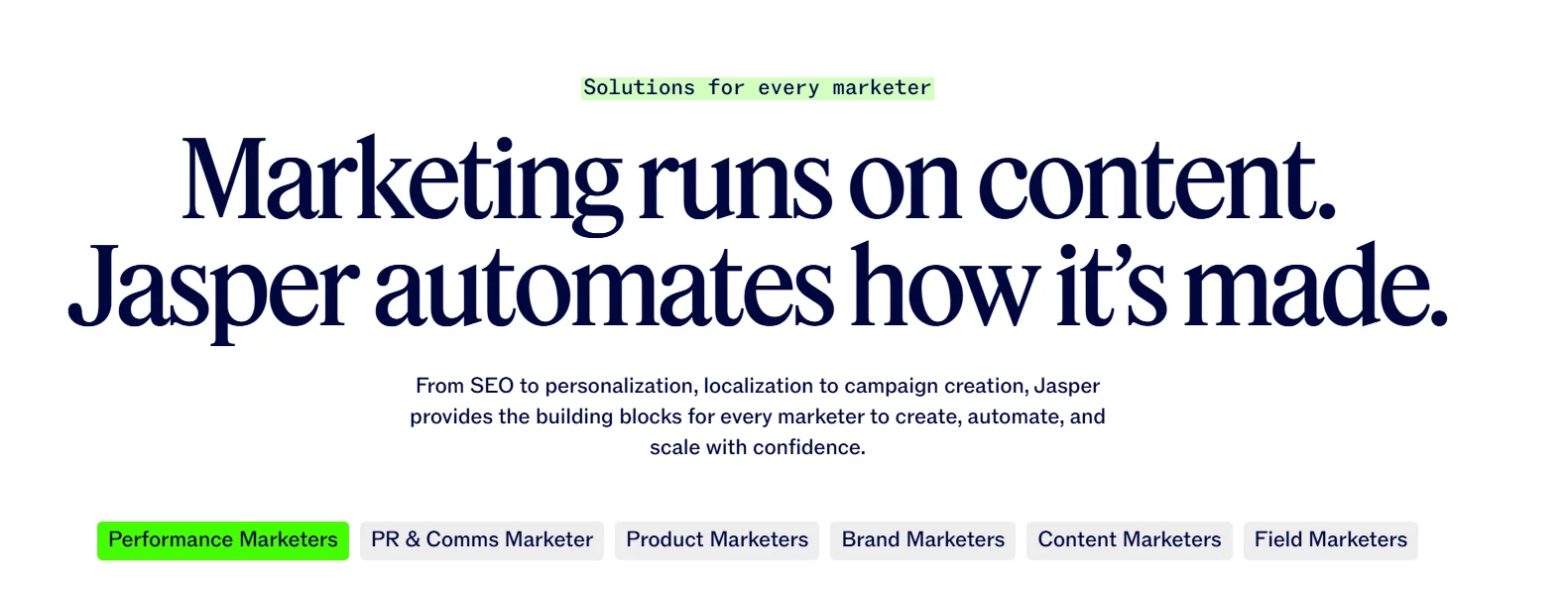 Jasper AI, originally known as Jarvis, started as a tool focused on content creation. Although it changed its name, its goal remains the same: helping marketers scale their content output.
