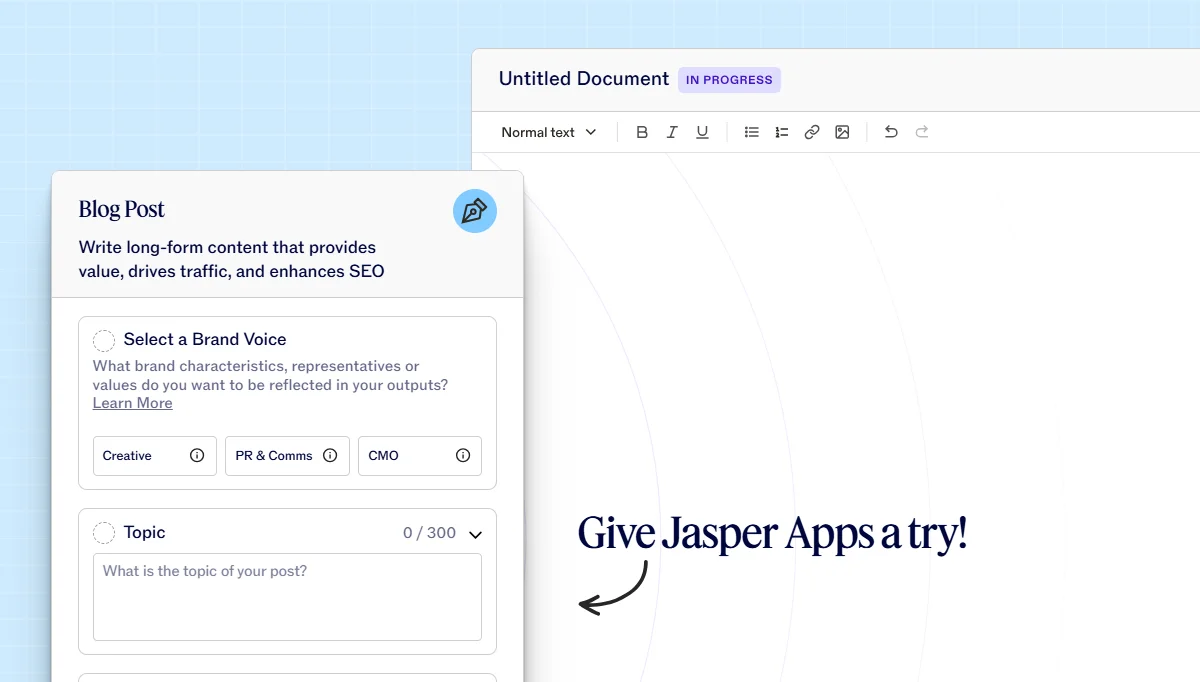 For shorter content, the process only takes a few minutes. For longer pieces, you may need to give Jasper more input to guide the writing.
