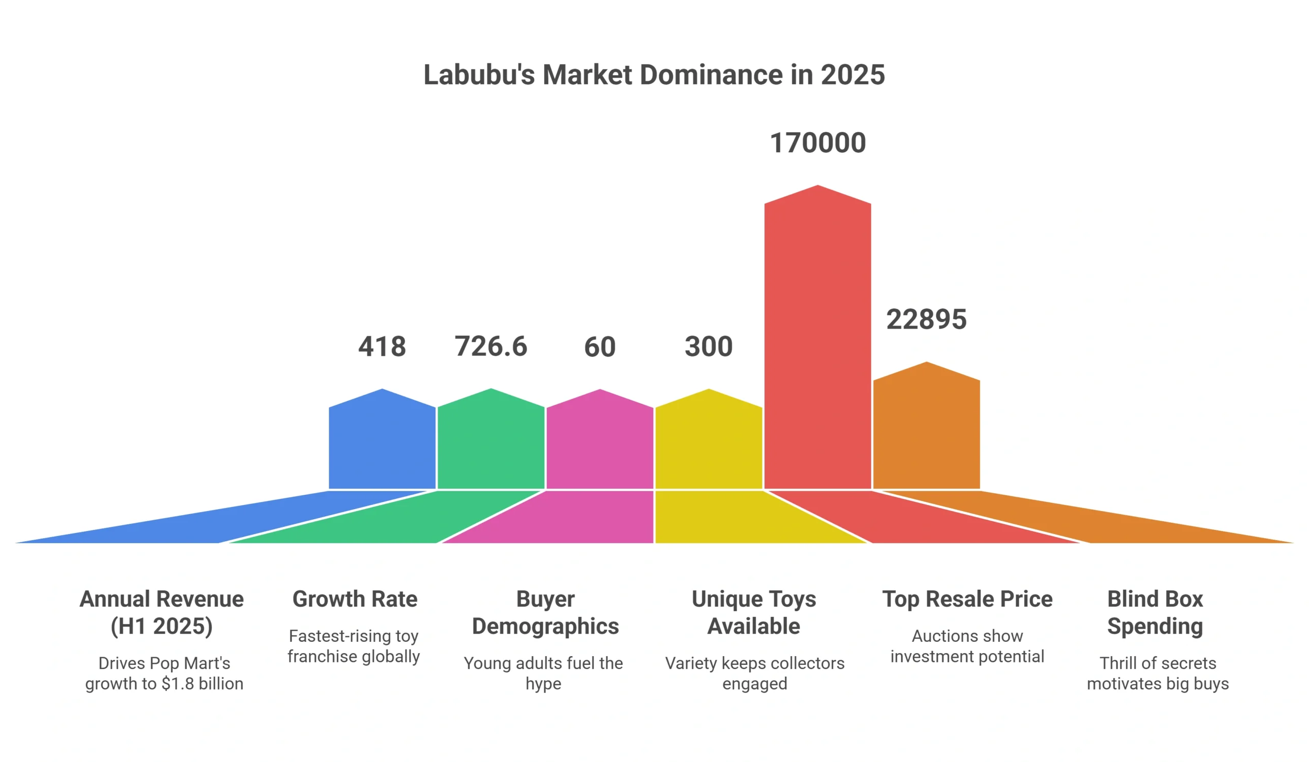 Labubu explodes onto the scene in 2025. Creators launch new series, and fans flock to stores. Here are the standout numbers that show its dominance.