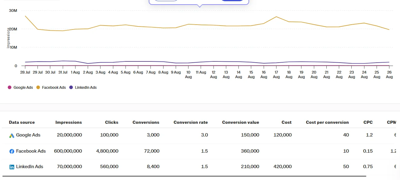 This customization ensures that your reports are aligned with your specific business goals, whether you need a high-level overview or detailed performance analysis. It’s particularly useful when reporting to clients or internal teams who require specific insights.