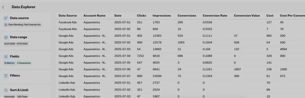However, their setup guides were very helpful, and once I got the hang of it, creating queries became much easier. If you’re new, I recommend starting with just one platform and experimenting before tackling more complex reports.