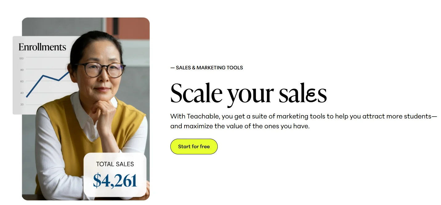Teachable’s marketing features help drive sales effectively: