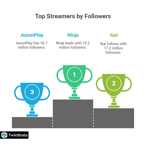 7.1 million streamers go live monthly, with 15.2 million unique in 2025 so far. Peaks hit 8.46 million in 2021, but consistency wins. Ninja tops followers at 19.2 million; Ibai (17.2M) and AuronPlay (16.7M) follow.