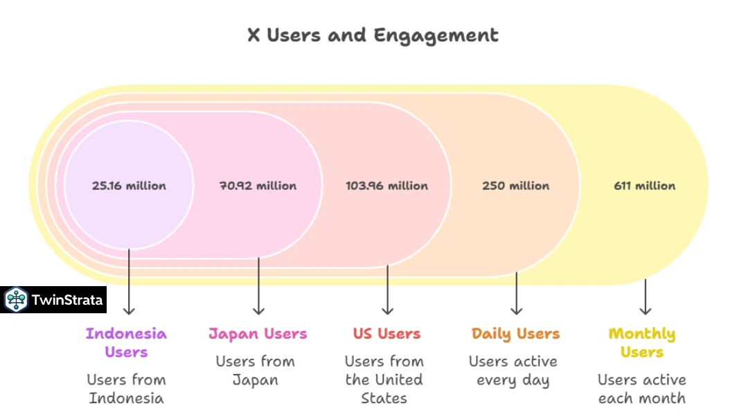 X’s global reach means its user base spans numerous countries, with significant concentrations in specific regions.